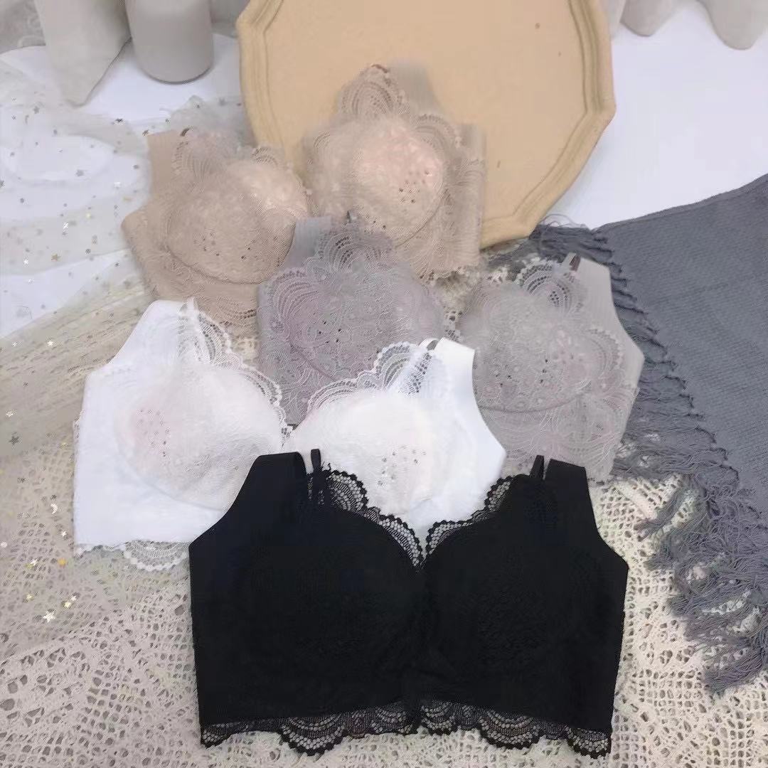 Solid Scalloped Mesh Lace Adjustable Strap Bralette
