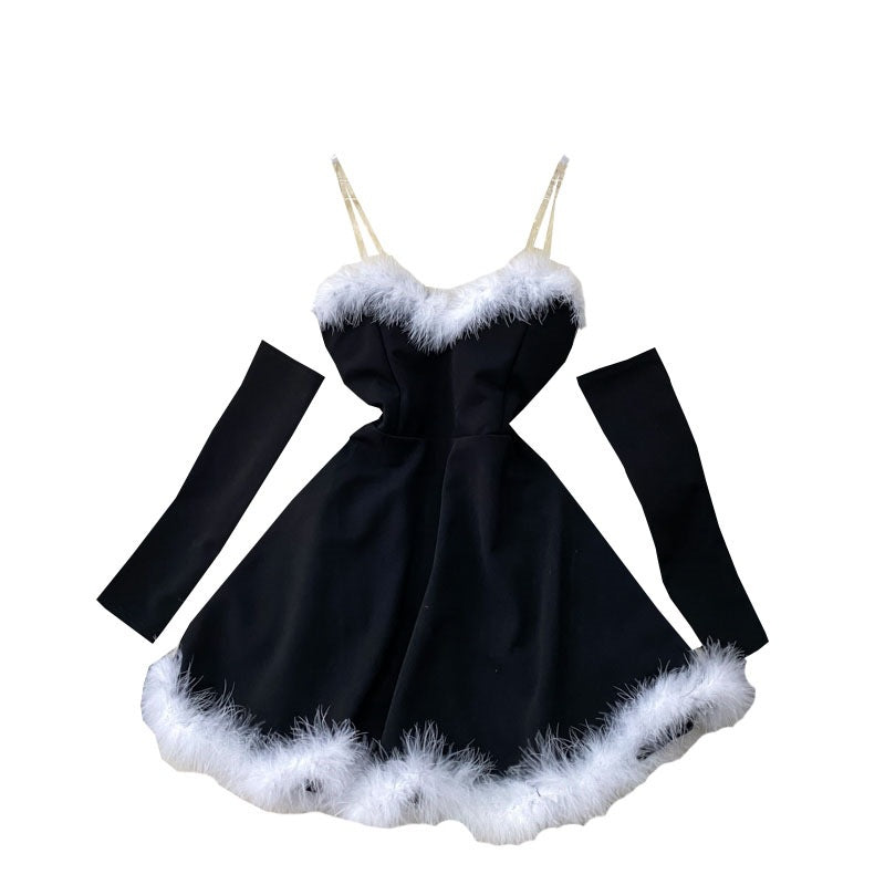 The front placket is a pullover style that is easy to put on and take off. The main fabric is made from polyester, which is soft to the touch and comfortable to wear. The Merry Santa A Line Fluffy Mini Christmas Dress is available in one size that fits most.