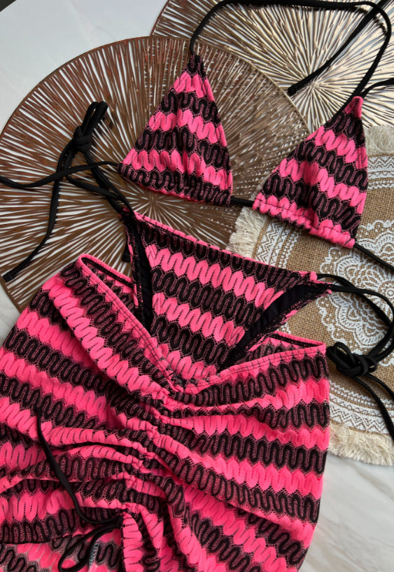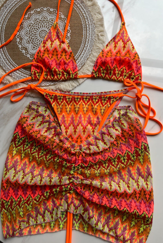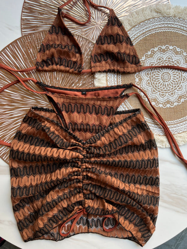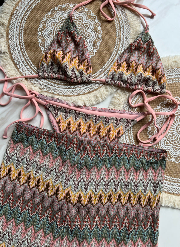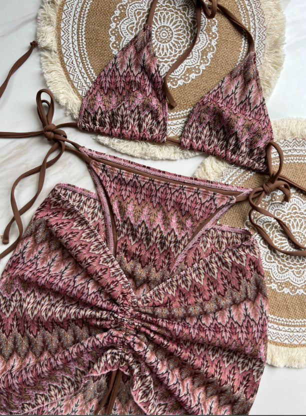 Elevate your swimwear collection with the Three Piece Maple Leaves Knitted Bikini Skirt, expertly crafted for both style and comfort. This set features a delicately knitted design inspired by the intricate beauty of maple leaves, offering a unique texture and visual appeal. The three-piece ensemble includes a bikini top, skirt, and coordinating bottom, providing versatile options for mix-and-match wear. Made from high-quality materials, it ensures a comfortable fit and durability, perfect for beach days or poolside lounging. This sophisticated bikini skirt set combines fashion-forward design with practical wearability for the discerning wearer.